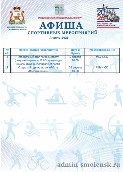 https://kult-kard.admin-smolensk.ru/news/afisha-sportivnyh-meropriyatij-kardymovskogo-municipalnogo-okruga-na-aprel-2026-goda/