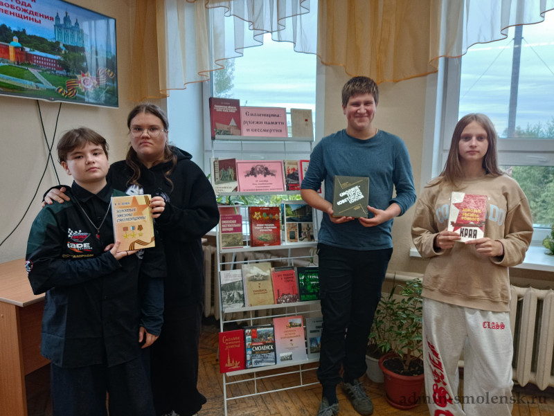 В Кардымовской центральной библиотеке прошел исторический экскурс «Мой край - моя гордость», посвященный дню освобождения Смоленщины. Все присутствующие вспомнили историю города-героя Смоленска, который во все времена играл важную роль в истории России, именно здесь скрещивались пути и судьбы нашего Отечества. Самые тяжёлые испытания выпали на долю Смоленска во время Второй мировой войны. Сколько раз Смоленщина вставала навстречу врагу, чтобы защитить сердце нашей Родины. Сколько раз ценой невероятно тяжёлых испытаний, ценой полного разорения и разрушения, задерживала и изматывала вражеские полчища. Горькую, ничем невосполнимую утрату понесла Смоленщина в результате зверств фашистских палачей. Не было на Смоленщине ни одного клочка земли, где бы ни стоял до последнего патрона, до последнего дыхания русский солдат.