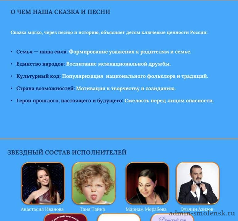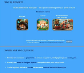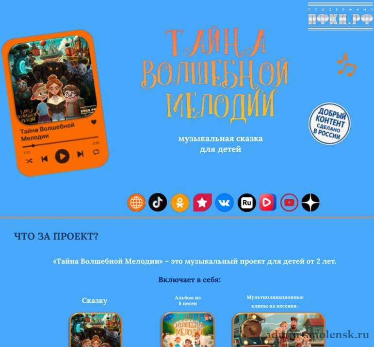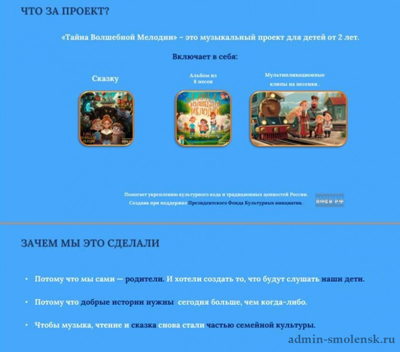 Культурно-просветительский проект для детей музыкальная сказка «Тайна Волшебной Мелодии» был создан при поддержке Президентского фонда культурных инициатив.
