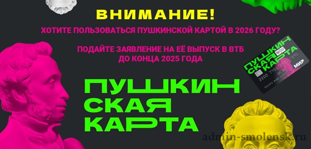 Уважаемые участники программы!Сообщаем вам о важных изменениях: с 1 января 2026 года оператором «Пушкинской карты» станет банк ВТБ.